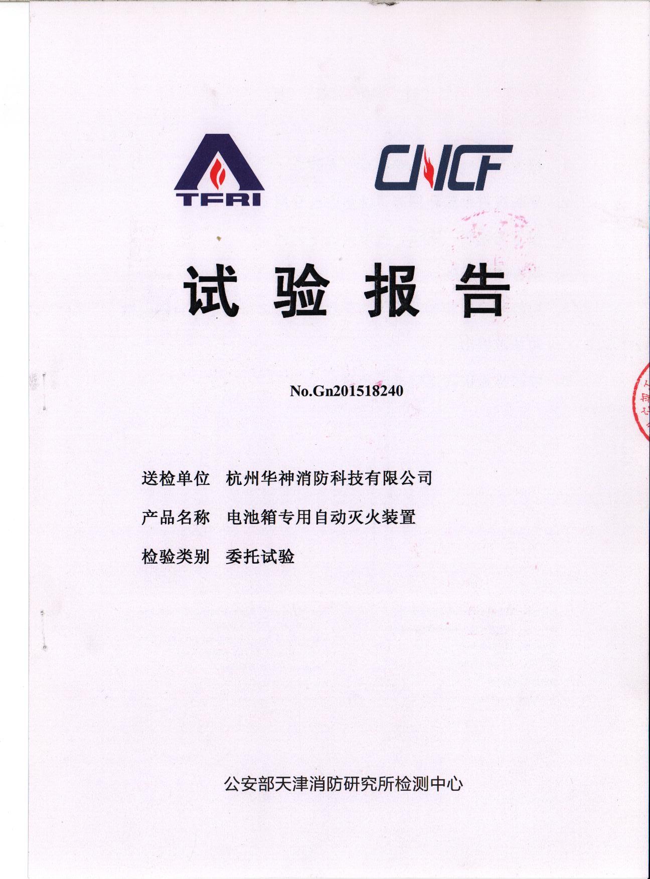 此项试验报告的取得,是“恒神”电池箱专用自动灭火装置走向市场、被动力电池、新能源汽车厂商认可使用的权威通行证。
